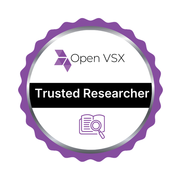 We recognize meaningful, responsibly disclosed contributions that help improve the security and trust of the Open VSX Registry. Recognition is based on impact, quality, and collaboration.